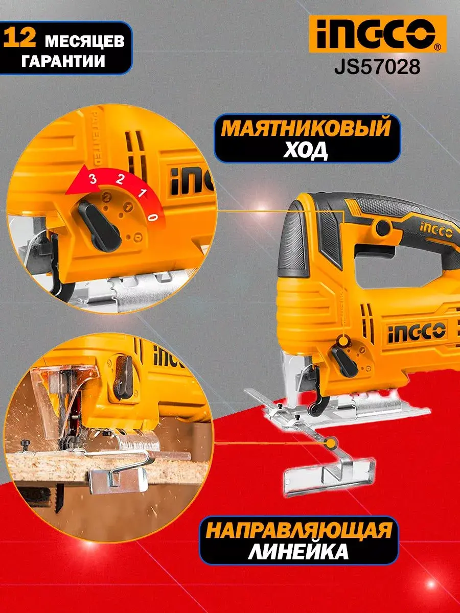 Электрический лобзик INGCO JS57028 представляет собой инструмент с электроприводом, предназначенный для поперечной, продольной и фигурной резки дерева, пластика, металла и других материалов.